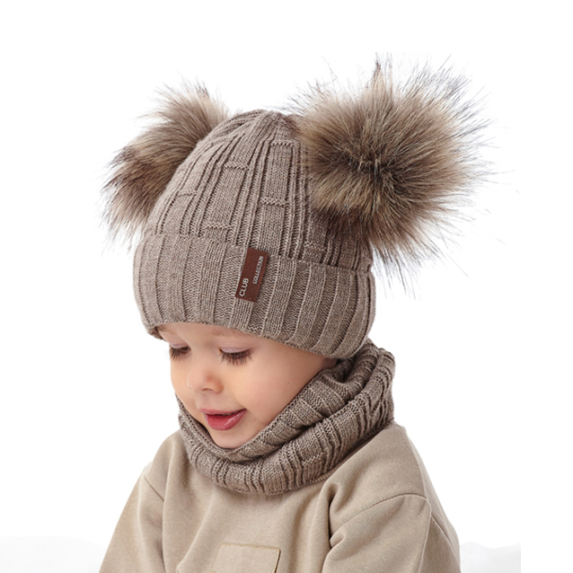 Vlnená zimná čiapka a tunel s rozkošnými brmbolcami a tunelom. Čiapka je nasúvacia.  Vhodná na 1 až 3 roky. Ideálny model pre akýkoľvek zimný outfit.