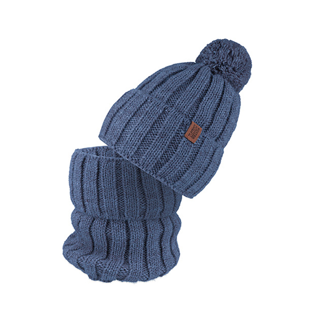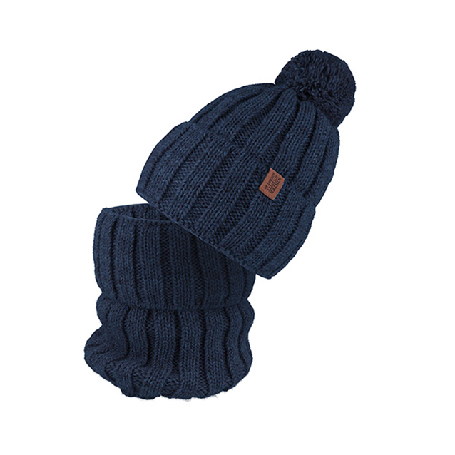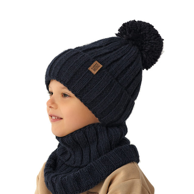 Chlapčenská dvojvrstvová čiapka s lemom, pletený motív. Pekne zakryje ušká. Čiapka má výraznú koženú náševku DESIGN v prednej časti.