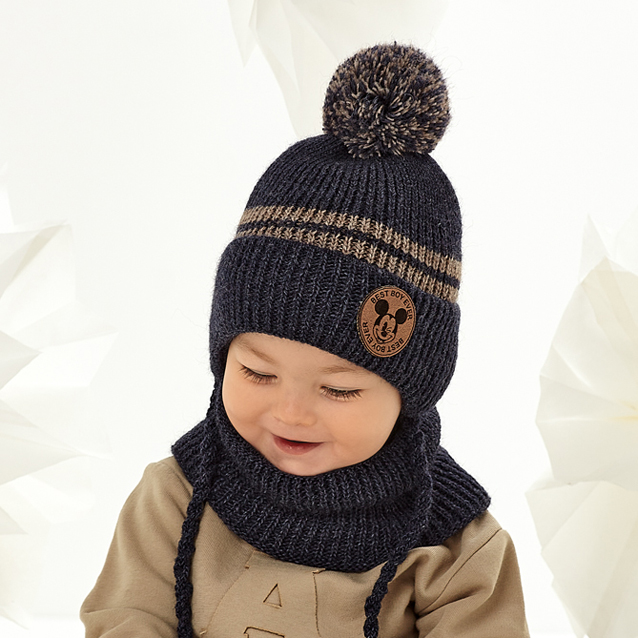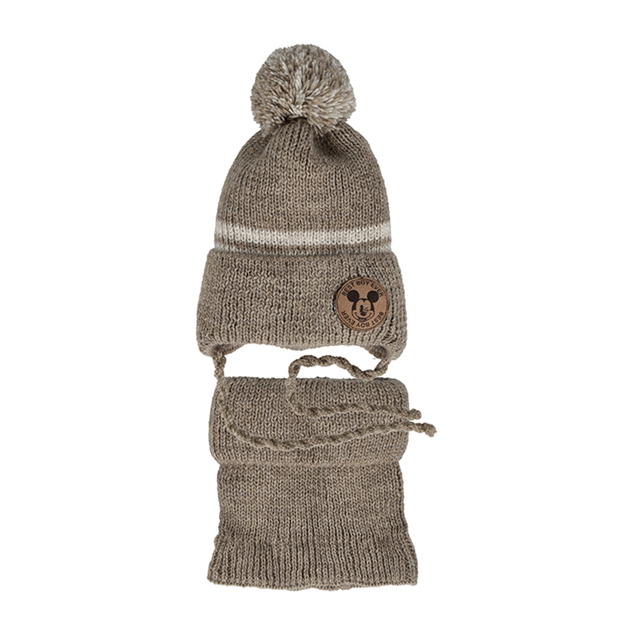 Pletený zimný komplet na chladné zimné obdobie. Pletený dizajn. Pekne zakryje ušká. Vhodná na 6-12 mesiacov. Univerzálna veľkosť sedí na obvod hlavičky (OH) 46-48 cm Zdobenie roztomilým brmbolcom. Tunel súčasťou kompletu.