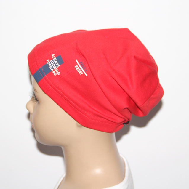 Jednovrstvová prechodná čiapka predĺžená. Zdobenie šmrncovným motívom s výrazným pásom v prednej časti. Sedí od 3 až 10 rokov.