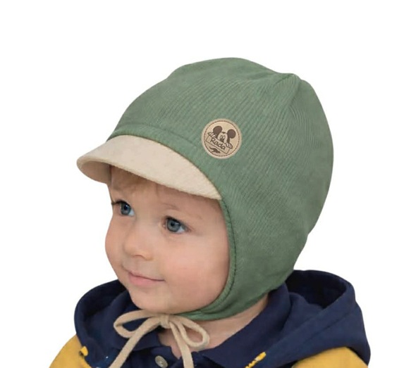DVOJVRSTVOVÁ detská bavlnená čiapka. Čiapočka má mäkký šit. Rebrovaná Bavlna elastanom. Strih prekryje ušká. Praktická šnúrka na viazanie deti milujú. Vhodná od 9 mes. do 6 rokov.