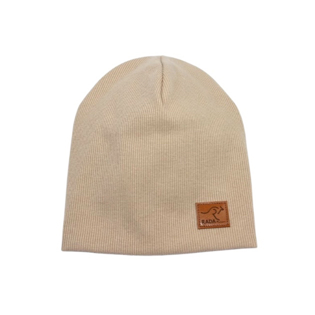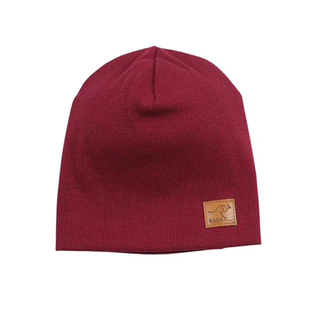 Štýlová prechodná čiapka od slovenského výrobcu Rada. Trendový rebrovaný materiál zdobený v prednej časti koženou náševkou. Strih je mierne predĺžený. Čiapka je vhodná od 9 do 36 mesiacov. Mäkký a poddajný jednoduchý džersej.