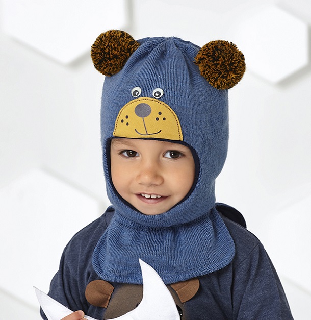 Teplúčka podšitá detská zimná kukla pre chlapca. Dômyselné spojenie čiapky a šálu v jednom. Vhodná od 1 do 3 rokov, podľa obvodu hlavičky (OH).