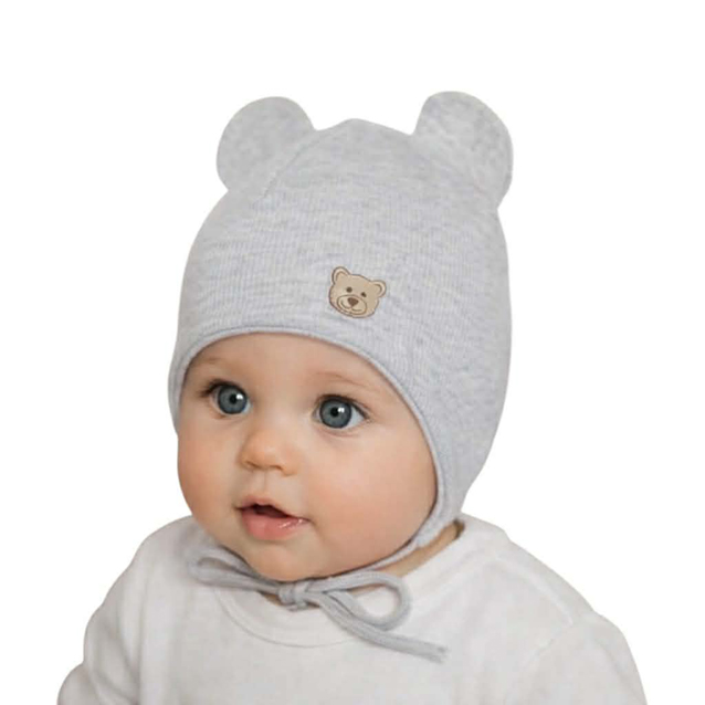 Bavlnená dvojvrstvová vrúbkovaná čiapka s uškami je teplá a príjemná pre bábätko. Je vyrobená z jemnej a mäkkej bavlny, ktorá je príjemná na dotyk. Chráni bábätko pred chladom a vetrom. Viazanie zabraňuje, aby sa čiapka zosunula. Na vrchu sú malé ušká a náševka medvedíka, ktoré dodávajú čiapkam veselý vzhľad.