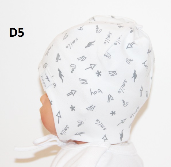 Jednovrstvová kojenecká čiapočka na viazanie. Po obvode hlavy zdvojená. Výborná na prechodné obdobie, s ochranou ušiek. Vhodná od 3 mesiacov.