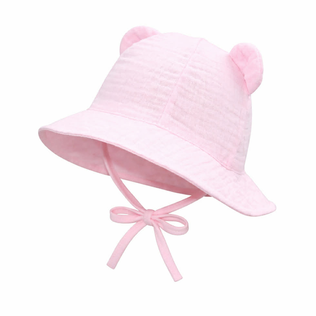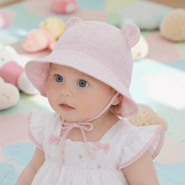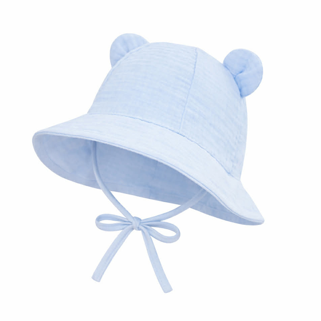 Vzdušná Kojenecká čiapočka na letné dni.  Bočné viazanie s roztomilými uškami dodáva klobúčiku nielen praktickosť, ale aj roztomilý vzhľad.