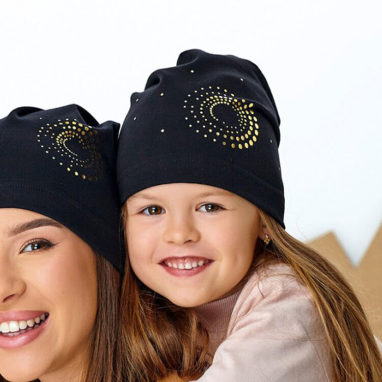 JEDNOVRSTVOVÁ čiapka s nádhernou potlačou so zlatými odleskami. Zaujímavo riešený mierne predĺžený strih. Kolekcia MAMA a DCÉRA. Táto čiapka je ideálna pre jar. Je ľahká, pohodlná a má krásnu farbu, vhodná pre každú príležitosť, či už ide o prechádzku v parku, nákupy v meste alebo piknik v prírode. Odporúčame všetkým dievčatám, ktoré chcú byť trendy a štýlové na jar.