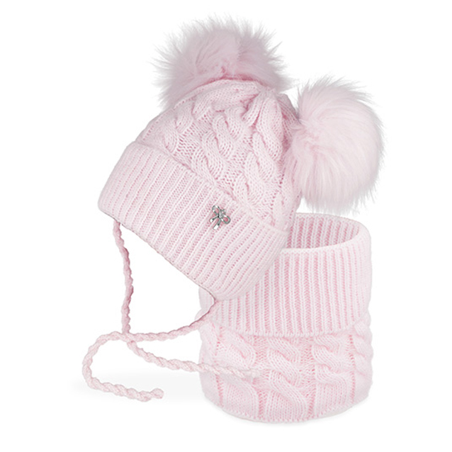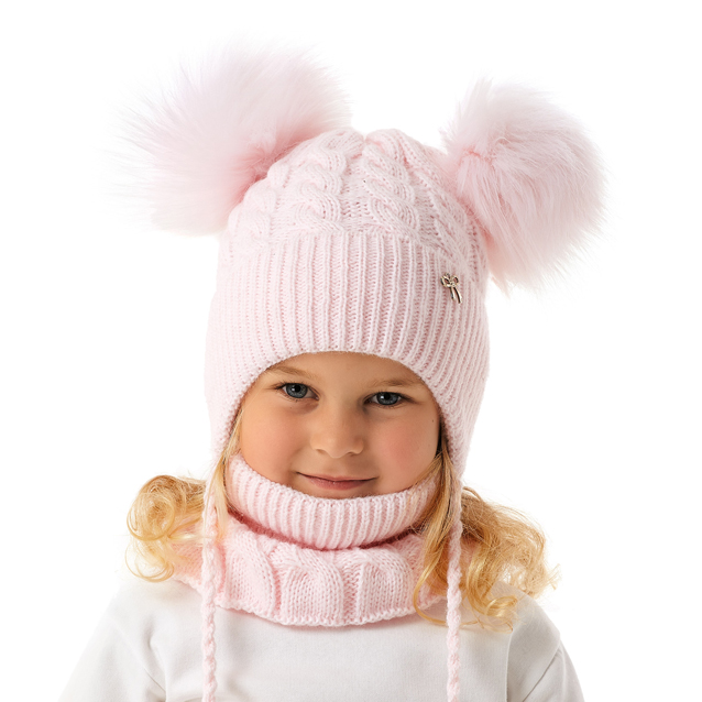 Dievčenská čiapka AJS Sanna dvojvrstvová podšitá nasúvacia s lemom. Teplúčky pletený golier, ktorý krásne ladí. Mäkký pletený vzor čiapky zdobený milou jemnou ozdobou v prednej časti.