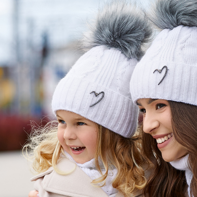 Dievčenská čiapka a Dámska čiapka z Kolekcia MAMA a DCÉRA, alebo pre dve sestričky. Čiapka je dvojvrstvová podšitá s lemom. Teplúčky tunel súčasťou kompletu. Čiapka a tunel spolu krásne ladia. Zdobenie ligotavými srdiečkami v prednej časti.