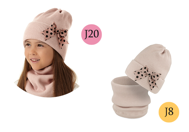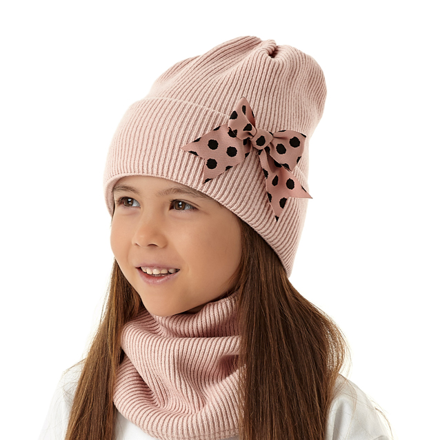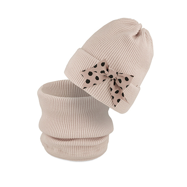 Dievčenská čiapka dvojvrstvová podšitá s lemom. Teplúčky tunel súčasťou kompletu. Čiapka a tunel spolu krásne ladia. Zdobenie výraznou mašličkou v prednej časti.